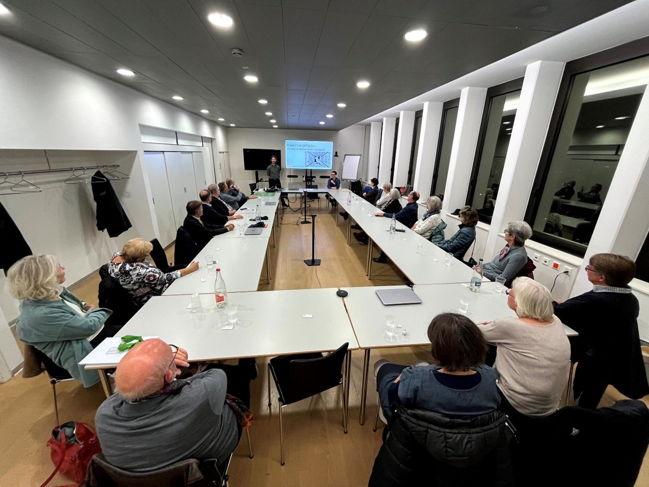 Viele der Anwesenden brachten selbst noch keine eigenen Chat-GPT-Erfahrungen mit. Es wurde daher sehr begrüsst, dass im Kurs auf zur Verfügung gestellten Rechnern und unter Anleitung praktisch geübt werden konnte. Einzelne hatten hier schon sehr konkrete Vorstellungen, etwa im Zusammenhang mit einem Argumentarium pro Service Public. Andere konnten Berührungsängste mit der Technologie abbauen bzw. sahen sich darin bestärkt, dass ein professioneller Einsatz von KI kritischer Reflexion bedarf.